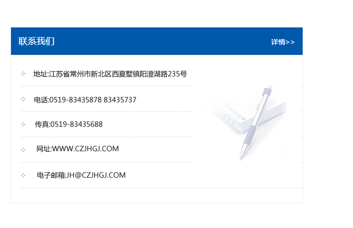 地址:常州市新北區友邦商務大廈1幢16、17層  電話:0519-85101652  傳真:0519-85112595  郵編:213022  網址:www.cz-jiayue_cn.shangrongdk.com  郵箱:xiajifengaa@163.com